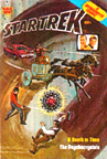 Whitman Dynabrite Reprints In 1978 - 1979, Whitman Publishing Co. produced a series of about 16 different comic reprints which were 10" x 7-1/8" with cardboard covers with blank inside covers. Two of these reprinted STAR TREK stories and these are described and depicted below.