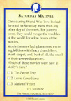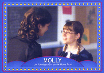 Molly's movie trading cards set will come in card packs containing a set of all 10 unnumbered cards from the 2006 Series Molly cards. The 2006 Series Molly set is a pack of ten trading cards wrapped in a clear cellophane wrapper and featuring photos of scenes from the new movie, which will air on television in fall 2006. Each card includes trivia questions, word scrambles, and information about the characters. The 2006 Series would be Molly's third card set. The cards were not numbered. The card reference numbers given below are provided as an aid to collectors.
