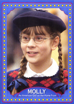 that had come out for these girls in the previous two years. The 2002 series card set for each of the first seven girls, Samantha, Molly, Kirsten, Felicity, Addy, Josefina and Kit included 16 cards, one unnumbered checklist card and 3 stickers, while Kaya's 2002 series card set included 30 cards, one unnumbered checklist card and 5 stickers. The 2002 Series would be Molly's second card set.
